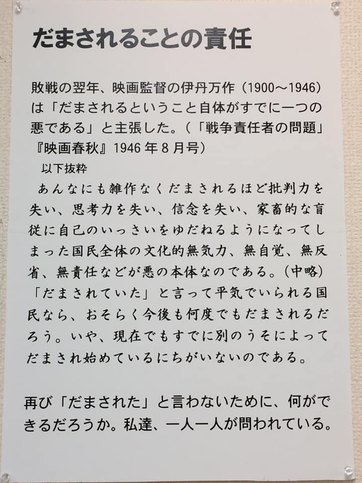 映画監督 伊丹万作氏の言葉をご紹介いたします。